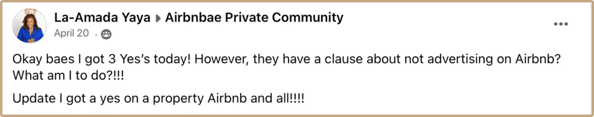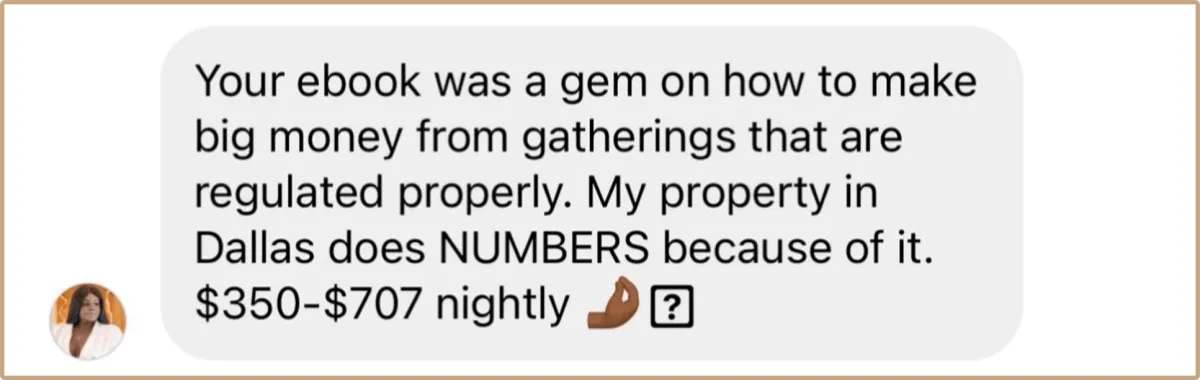 INCOME DISCLAIMER: Although we make every effort to accurately represent the services and/or products presented on this website, Airbnbae and Seven Figure Host, LLC makes no assurance, representation or promise regarding future earnings or income, or that you will make any specific amount of money, or any money at all, or that you will not lose money. Earnings or income statements, or examples of earnings or income, represent estimates of what you may earn; however, there is no promise or guarantee that you may experience the same level of earnings or income. There is no assurance that any prior success or past results regarding earnings or income may be an indication of your future success or results.